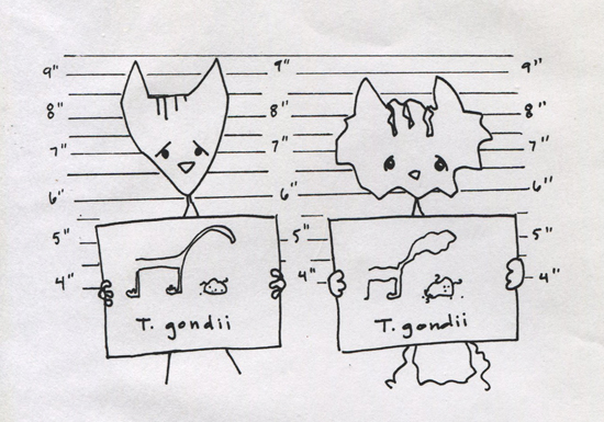 Reilly Allen, a great friend of mine, came to visit me a few months ago. She promptly accused my cats of harboring a parasite that would make her go crazy. (as if anything could make her go more crazy…)