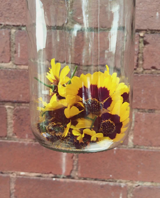 dried marigolds (mostly what you see here). dried coreopsis. dried/frozen goldenrod.