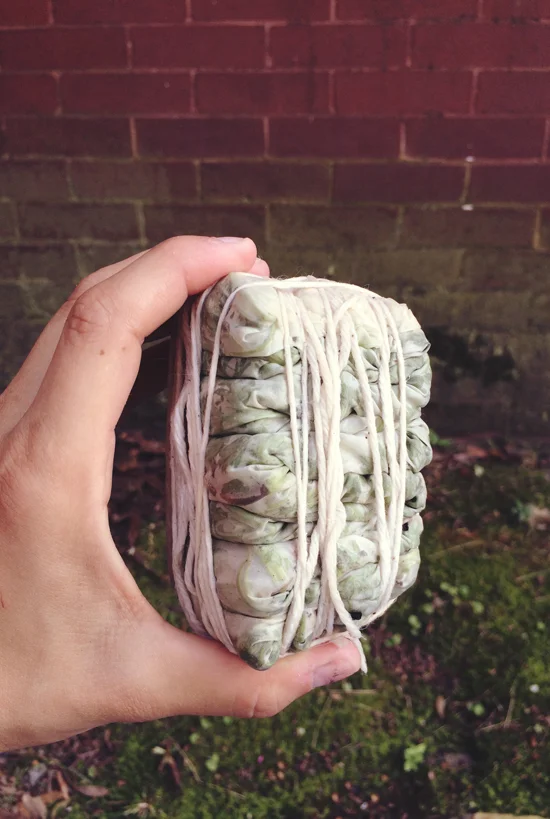 Normally, when I eco-bundle, I douse the fabric in vinegar, throw in some flora, roll, secure, steam, and wait. I've gotten some pretty beautiful results in my haphazard way of doing things, but these days I'm becoming more curious about the chemistry and reason behind it all. I've known about pH modifiers since the beginning, but never paid to much attention to it, until recently when I started an indigo vat... results from that later...