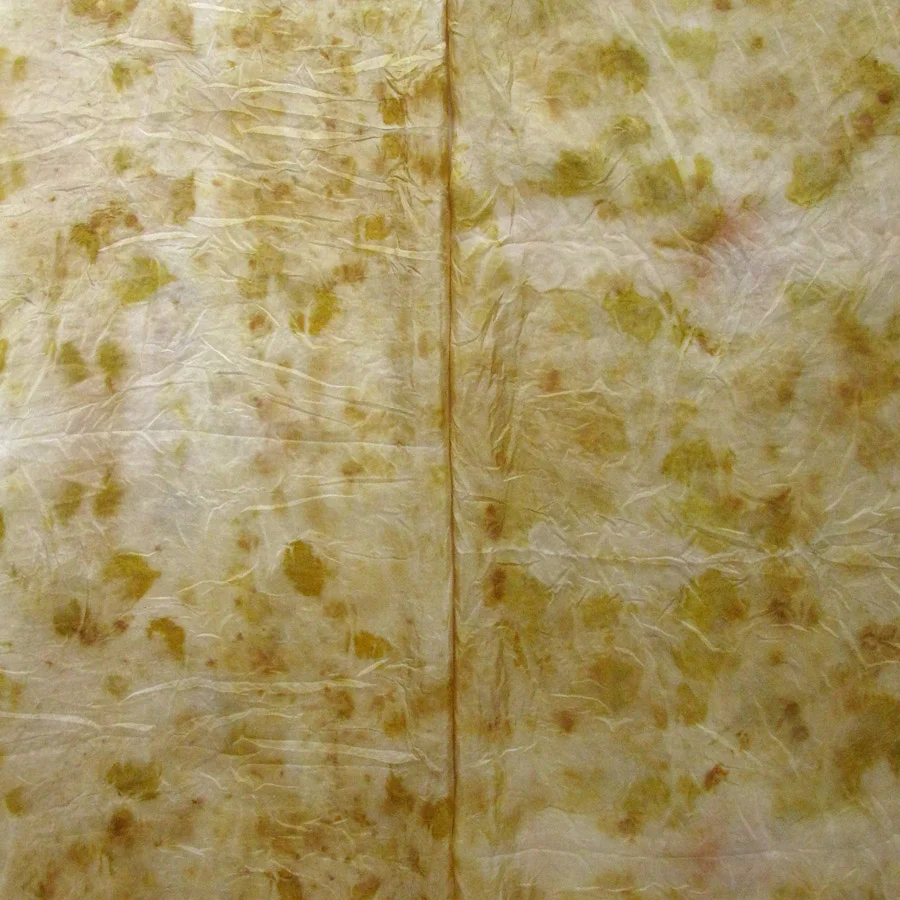 What I have noticed is that a lower pH achieves a much more crisp and defined print from each plant, EXCEPT from the carrot tops. And all of the colors are a bit warmer when compared to the colors achieved from the higher pH bundles. The higher pH bundles gave greener shades and seemed to allow the color to disperse a bit more into the fabric.