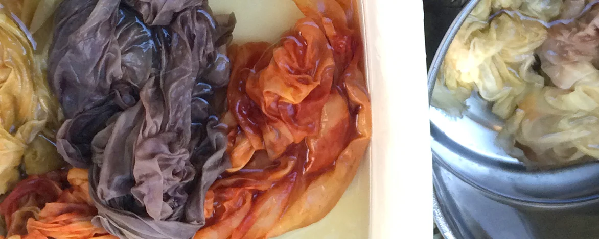 I used 8mm silk habotai: scoured and mordanted with alum + cream of tartar.