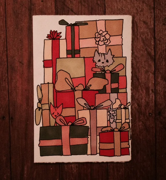 I've started a new thing. Because Lane and I have the best kitties in the universe, I'm going to be documenting their real life holiday adventures in the form of cards. Each holiday will be a new set of cards. It's going to be called "What About The Kitties?" Keep those eyes peeeeeeeled.