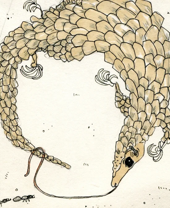 But, with more pangolin research came the inevitable pang in my heart, when I read how exploited these guys are. It got me thinking about why any animal is sold on the black market. Not for hunger or for survival of the captor, but for show, so that those who purchase these animals can shake their fancy cock feathers. Humans can be so self righteous and greedy. But that’s no new concept, so we shall move on.