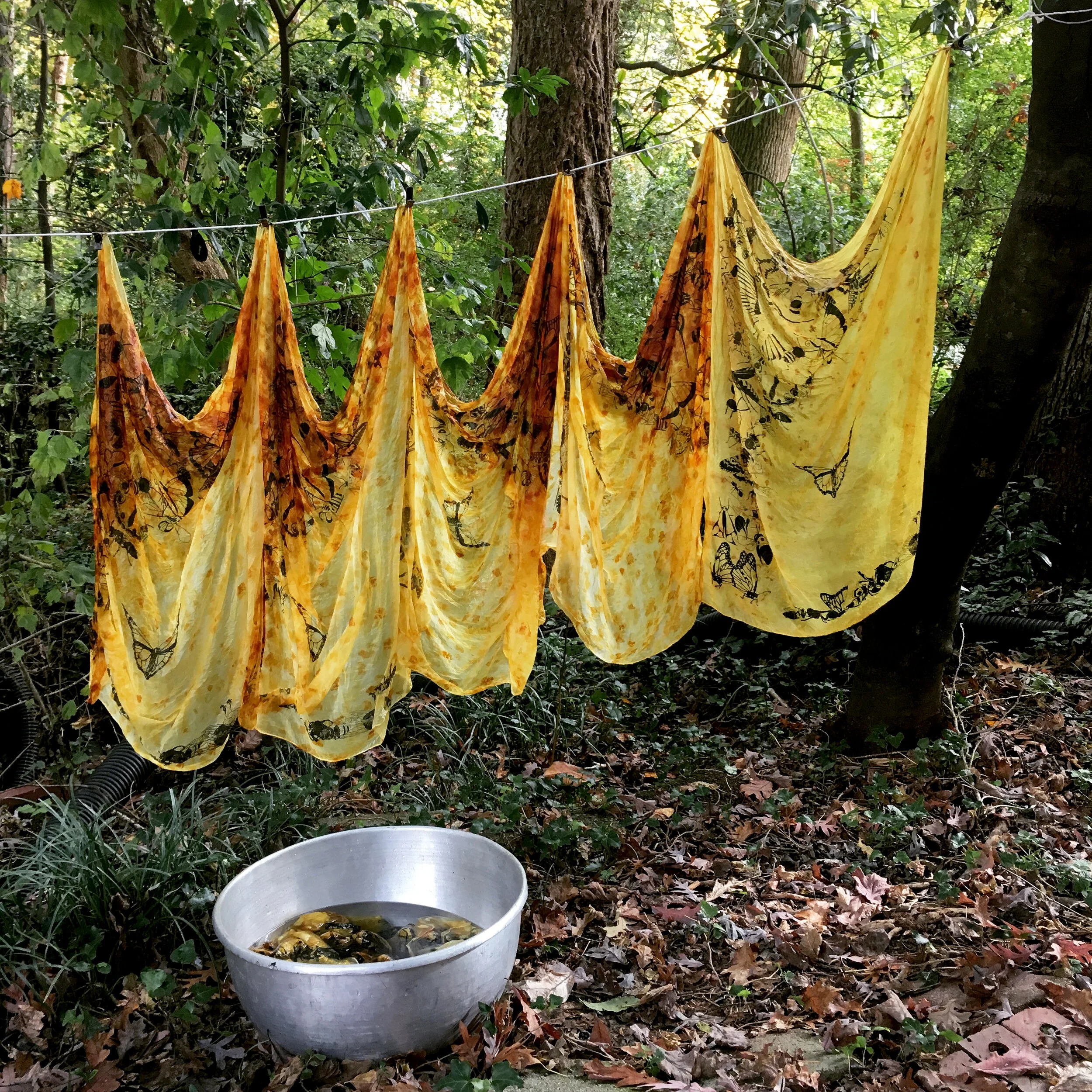 A very limited collection of naturally dyed, screen printed and mud resisted silk scarves whose purpose is to spread seeds of information about the importance of how our actions affect native pollinator populations through utility and beauty.